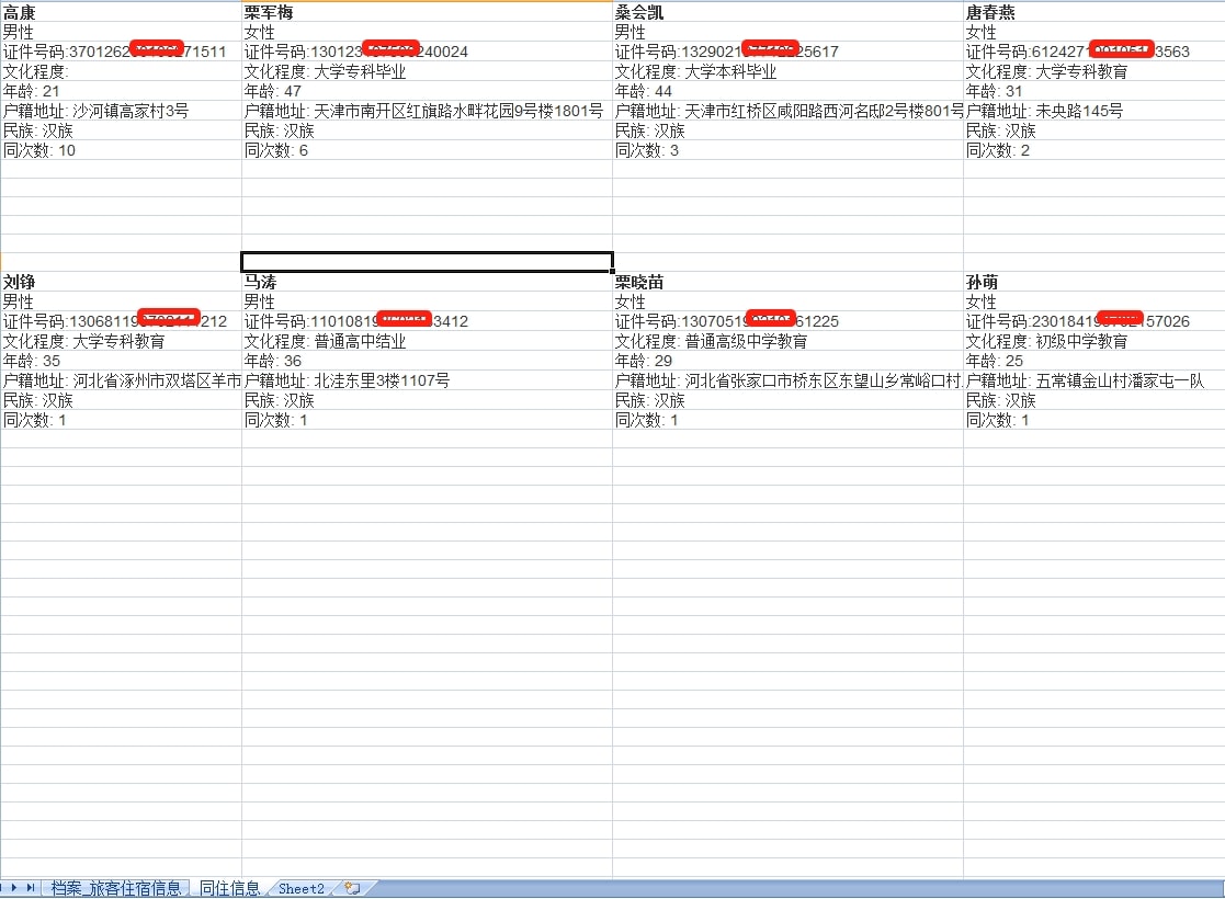 查询个人开房记录及同住人信息